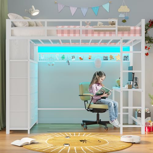ADORNEVE Twin Size Loft Bed with Desk and 8 Storage Drawers ...