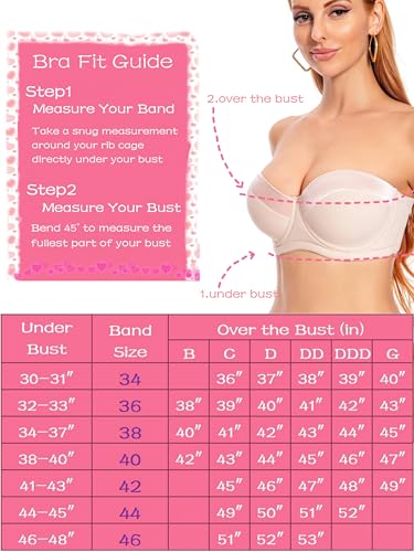 Dvpol Strapless Bra 38D Bras for Women Push up Beige Pink