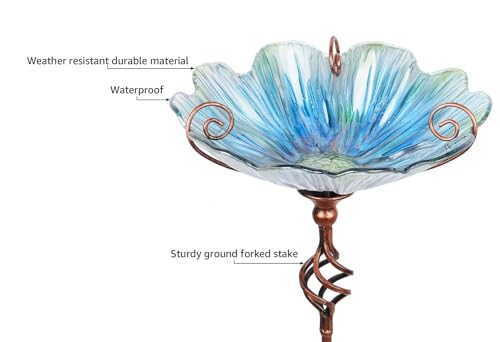 MUMTOP 31 Inch Height Glass Birdbath Birdfeeder with Metal S...