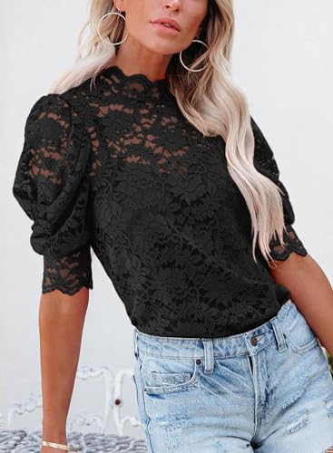 DOROSE Summer Tops for Women Trendy Mock Neck Work Black Lac...