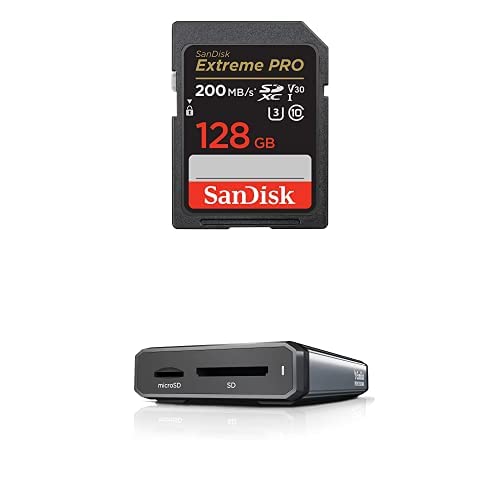 SanDisk 128GB Extreme PRO SDXC UHS-I Memory Card - Up to 200MB/s with SanDisk Professional PRO-Reader SD and microSD - High Performance Card Reader