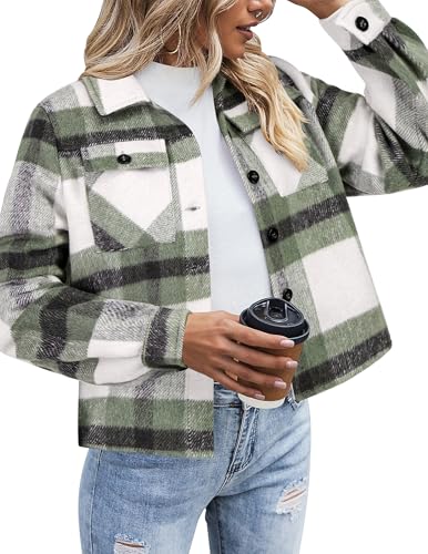Zeagoo Women's Fashion Cropped Shacket Jacket Wool Blend Pla...