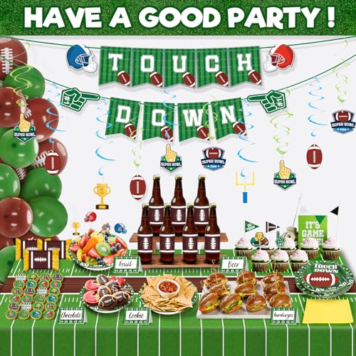 Football Party Supplies Kit Serve 25 Includes Disposable Dinner Plates Dessert Plates Napkins Cups and Football Tablecloth Football Birthday Party Tailgate Party Decorations Price in USA