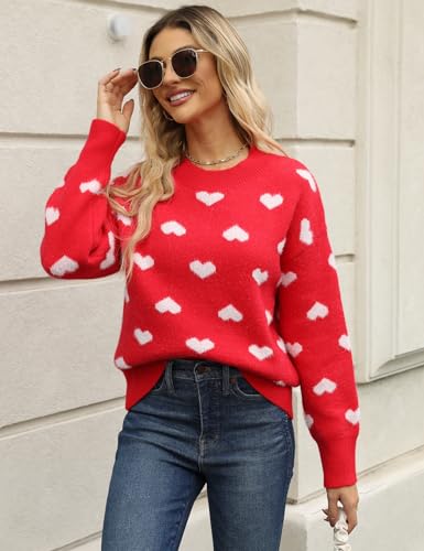 Gihuo Heart Sweater for Women Cute Kawaii Casual Crewneck Lo...