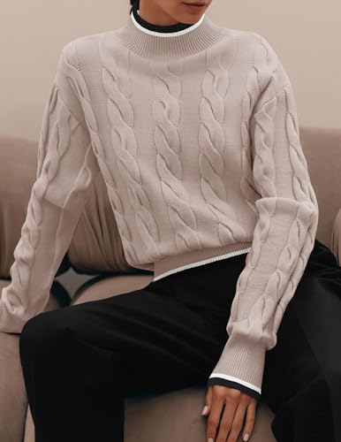 ZESICA Women's 2024 Casual Long Sleeve Mock Neck Cable Knit ...