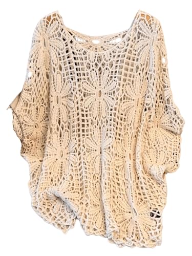 MakeMeChic Women's Plus Size Sweater Floral Crochet Dolman S...