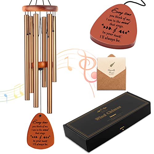 The Best Sympathy Gift -- Soopau Wind Chime Soopau wind chime will be a great choice to help others in times of grief. It provides a way for grieving family members to let them know that you are missing them even if you cannot be with them when they are sad. Great Addition to Home Decor You can hang it on a tree on a backyard porch or patio or even next to a window. Every time the breeze blows over the wind chimes and makes a pleasant sound that means our thoughts have been answered. High-quality Wind Chime The memorial wind chimes are made of high-quality aluminum and premium pine wood which is rust-resistant and corrosion-resistant the outer coating is not easy to fade and it has a longer service life. The commemorative pendant at the bottom of the wind chime is engraved with \"Listen to the wind and think of me. In your heart I will always be.\" \" Always loved Forever missed\" is engr