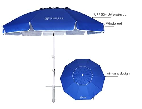 AMMSUN 8FT Large Beach Umbrella with sand anchor Heavy Duty ...
