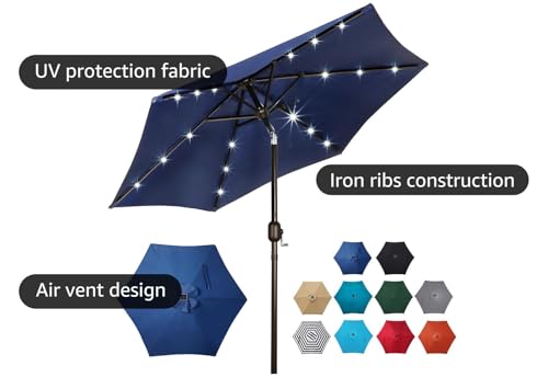 Blissun 7.5 ft Solar Umbrella 18 LED Lighted Patio Umbrella ...