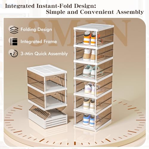 Shoe Box Organizer 6-Tier- No-Assembly One-Piece Design Magn...