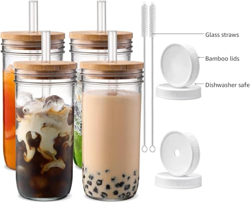 Glass Cups with Lids and Straws 24 oz Smoothie Cup with Lid ...