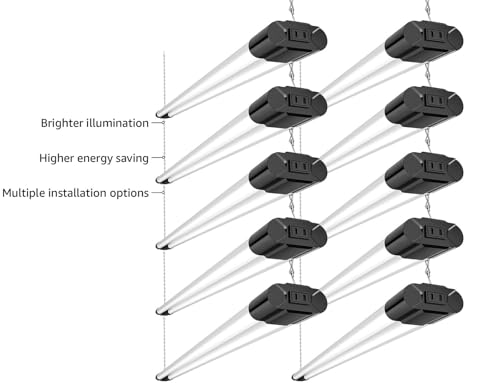 Bbounder 10 Pack Linkable LED Utility Shop Light 4400 LM 6500K Cool Daylight 4 FT Integrated Fixture for Garage 40W Equivalent 250W Surface + Suspension Mount Black Price in USA