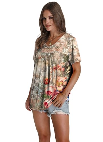 1.Introducing our lightweight and comfortable women's tunic tops crafted from high-quality fabrics with a loose fit design. These tops are made from a blend of 95% polyester and 5% elastane ensuring a soft breathable and wrinkle-resistant wear. Whether you choose to hand wash or machine wash them these tops will dry quickly and maintain their shape without any shrinkage. 2.Our tunic tops feature a casual round-neck design and 3/4 sleeves creating a versatile look that can be dressed up or down for any occasion. The flowy hem and unique cutting not only provide a flattering fit but also offer a modest coverage for the belly and hips. You'll feel confident and stylish as the tops effortlessly fall from the waist accentuating your best features. 3.Perfect for both casual and professional settings these tunic tops are a must-have addition to your wardrobe. Pair them with jeans leggings pants skirts or even shorts and complete the look with your boots heels o
