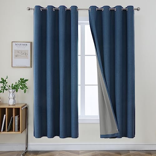 NICETOWN Natural Bedroom Full Blackout Linen Curtain Panels Set of 2 52\" by 72\" Cold Reducing Thick Insulated Classic Grommet Blackout Draperies with White Thermal Insulated Liner for Windows