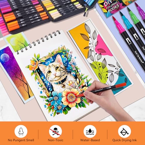 24 Colors Acrylic Paint Pens Dual Tip Pens with Medium Tip and Brush Tip for Rock Painting Ceramic Wood Plastic Calligraphy Scrapbooking Brush Lettering Card Making DIY Crafts Price in USA