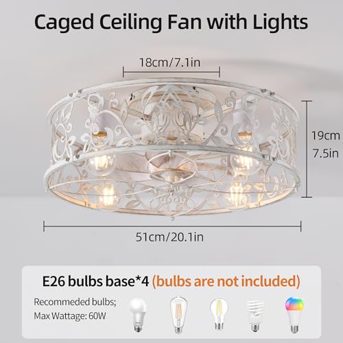 Garwarm Caged Ceiling Fan with Light 20"" Flush Mount Ceilin...