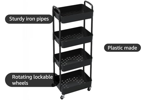 Sywhitta 5-Tier Plastic Rolling Utility Cart with Handle Multi-Functional Storage Trolley for Office Living Room Kitchen Movable Storage Organizer with Wheels White Price in USA