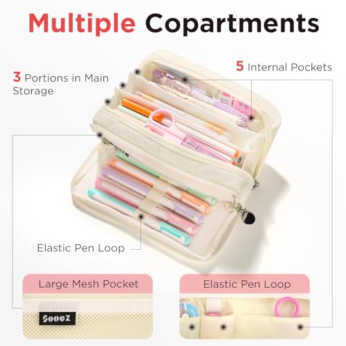 Sooez Large Pencil Case Pouch Extra Big Pencil Bag with 8 Co...