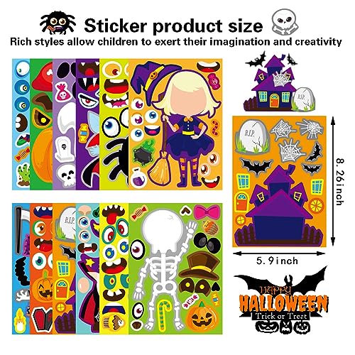 48 PCS Halloween Make-a-face Stickers Halloween Characters S...