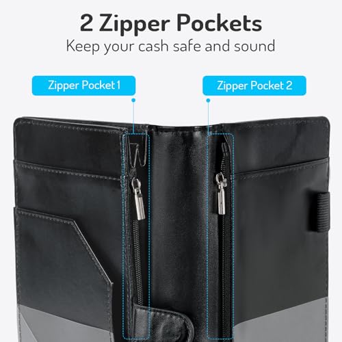 Forvencer Server Book 2 Zipper Pockets Leather Server Books for Waitress Waitress Book Sturdy Waiter Book Serving Waitress Accessories Fit Server Apron Waitress Notepad (Black)