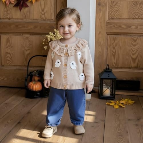 wybzd Toddler Girl Cardigan Sweater Baby Halloween Ghost Out...