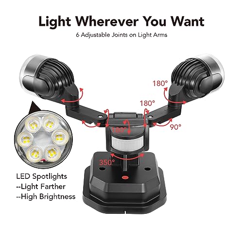 OREiN 3500LM/26W Flood Lights Outdoor 240°/40FT Motion Sensor Outdoor Lights Dusk to Dawn Security Lights IP65 Waterproof 3 Modes for Outside 3500SQ.FT Front Door Garage Black (Hardwired)