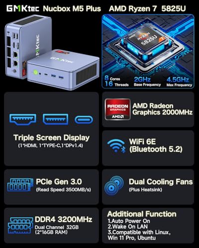 GMKtec Mini PC 5700U M5 Pro Desktop Computer Windows 11 Pro ...