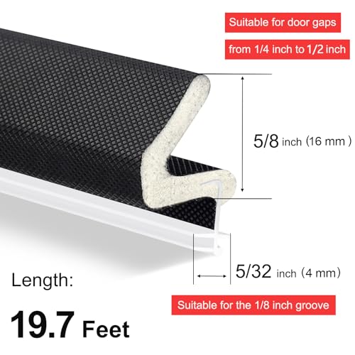 Specifications: Type: Garage Door Weather Stripping Material: Rubber T-End: 5/16 inches Width: 3.74 inches Length: 20FT Color: Black Package List: 1 x Garage Door Weather Stripping 2 x Rubber end plugs 1 x Instruction