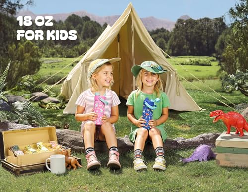 18 oz Kids Water Bottle for School: Leakproof 2-in-1 Straw S...