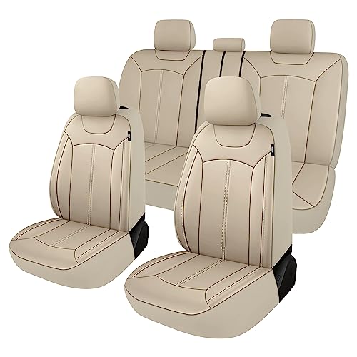 Pariitadin Leather Car Seat Covers Full Set Waterproof Faux Leather Automotive Vehicle Cushion Cover with Non-slip Bottom Universal Fit for Most Cars sedans Vans SUVs