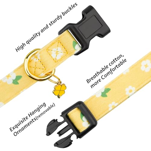 Faygarsle Cotton Designer Dogs Collar Cute Flower Dog Collars for Girl Female Small Medium Large Dogs with Flower Charms.Introducing our newest addition to your pup's wardrobe - the girl dog collar. Made for the stylish and chic female dogs out there this lovely collar is also perfect for small dogs. Even larger and medium-sized dogs can rock this floral collar with ease. Perfect for spring and summer this collars is designed to keep your furry best friend stylish and comfortable all year round. The soft fancy design features beautiful flowers that will add that extra bit of flair to any dog's outfit. Durable and practical this pet collar will make your dog look fabulous on any occasion. Upgrade your pup’s look with a beautiful floral dog collar with a perfect combination of style and comfort. The dog collar with flower charm and make your pup’s style shine!