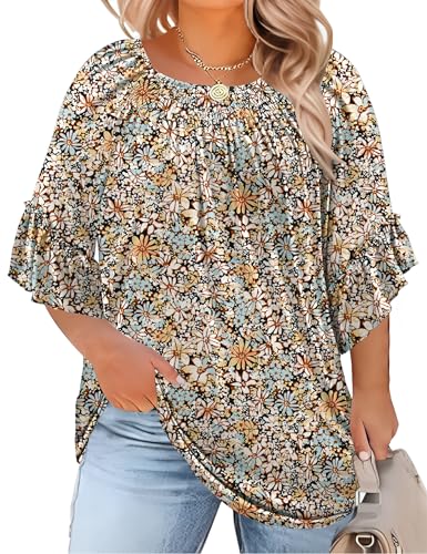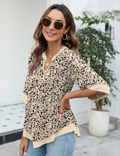 Eytino Women Plus Size Boho Floral Printed Tops Casual V Nec...