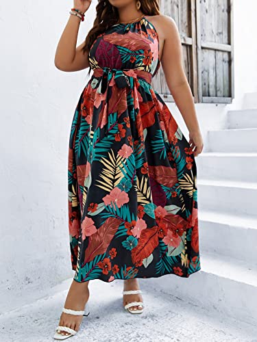 Floerns Women's Plus Size Boho Sleeveless Halter Neck Tie Ba...