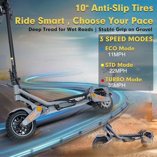 How to ride and park? 1. Step on the pedal power switch with foot and slide the other foot on the ground; 2. When the scooter slides at a certain speed put your feet on the pedals. Note: Do not step on the accelerator until the scooter reaches a speed of 2pm/h the scooter must travel at least 2pm/h for the motor to work. 3. When you need to switch between different speeds you need to stop in a safe position and then step on the foot switch button twice in a row to switch and the buzzer will sound the gear. The maximum speed of the 1st gear is 4pm/h and the maximum speed of the 2nd gear is 6pm/h. 4. When parking is required step on the rear wheel fender to apply friction to the rear wheel to brake.