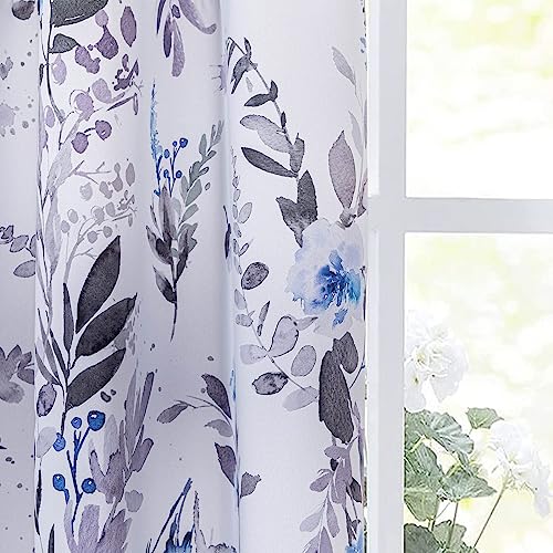 MYSKY HOME Living Room Curtains 84 inches Long Floral Curtains Light Filtering Thermal Insulated Soft for Dining Room Farmhouse Leaf Grommet Curtains Home Decoration Set of 2 Panels Navy Blue