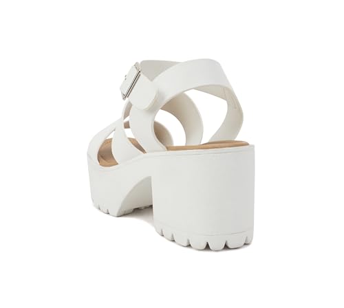 Soda Lug Sole Ankle Strap White Platform Sandals