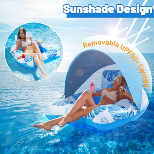 Sloosh Inflatable Tanning Pool Lounge Float 85"" x 57"" Extra Large Sun Tan Tub Adult Floats Raft for Sunbathing Suntan Blow up Lounger Bed Floatie Adults(XL-Blue) Price in USA