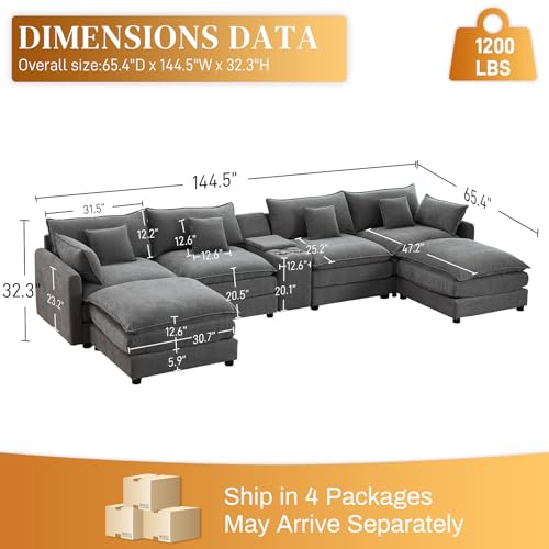 ONEMMLION 145\" U Shaped Cloud Couch Sectional for Living Ro...