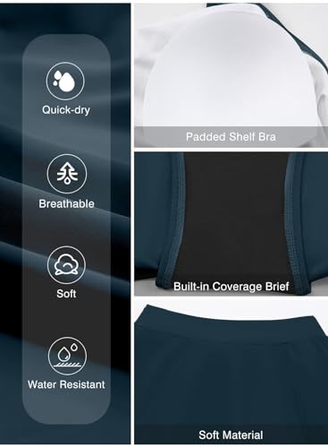 Aleumdr 3 Piece Swimsuits for Women Athletic Tankini Teen Bathing Suit Tummy Control Modest Swimwear with Boy Shorts Purple Small Purple Blue Price in USA