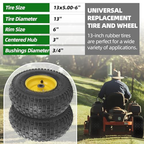 13x5.00-6 Tire and Wheel Assembly (2-Pack) Tubeless Lawn Mower Tire with Rim with 3/4” Bushings and 3” Centered Hub Length Price in USA