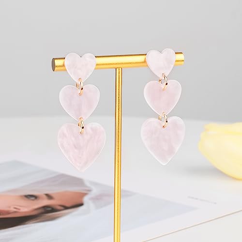 LEE&RO Heart Earrings for Women Dangle Light Pink Heart Earr...