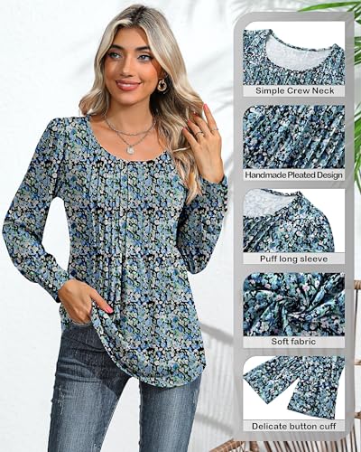Ficerd Women's Puff Long Sleeve Tunic Tops Pleated Crew Neck...