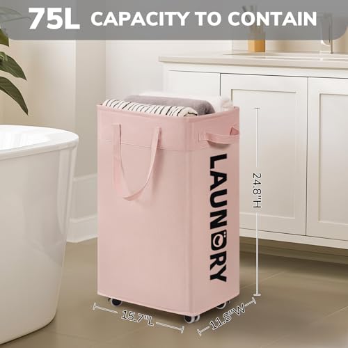 Goodpick Laundry Hamper with Wheels 75L Collapsible Laundry ...