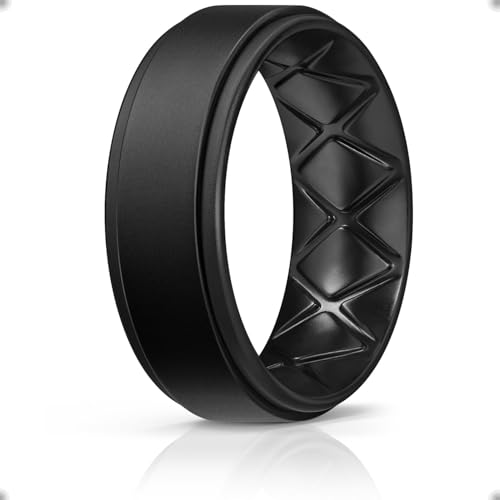 ThunderFit Men's Silicone Ring Step Edge Rubber Wedding Band...
