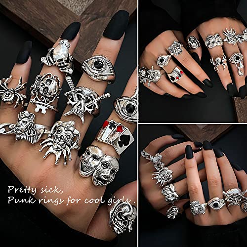 Vintage Silver Punk Rings Set for Men Cool Gothic Chunky Rin...