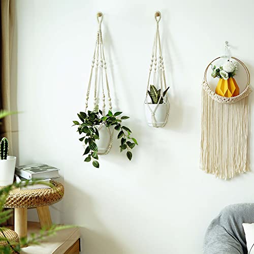 Koalaime Hanging Planter Self Watering 10 Inch 2 Pack Indoor Outdoor Hanging Baskets Hanging Flower Pots with Drainage Hole & 2 Kinds of Plant Hangers for Garden Home Decor(Cream)… Price in USA