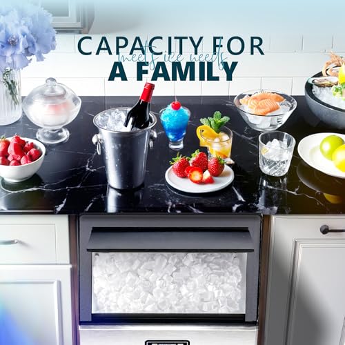 Product Description FZF Ice Maker Machine for Countertop FZF Ice Makers Countertop equipped with perfect fast cooling and powerful compressor system it can make up to 40 pounds of ice cubes every 24 hours which is enough to meet the needs of a family party enabling you to enjoy fresh ice-cold beverages at any time! Specification: Water Reservoir Capacity: 1.8L Ice Basket Capacity: 0.8L Production in 24H: 26 pounds Power Source: 115V/60Hz Rated Current: 1.7A Housing: SUS304 ABS Package Content: 1 x Ice Makers Countertop 1 x Ice Basket 1 x Ice Scoop NOTES: 1.Read the user manual thoroughly before using Ice Makers Machine Countertop. 2.After receiving the tabletop ice maker machine please let it stand upright steadily on a flat and stable for 2-4 hours before turning it on. 3.Please empty the water reservoir and dry it for storage if countertop ice maker machine is not used fo