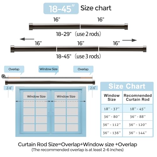 【Superior Material】Shower Curtain Rod is Made of premium Stainless Steel.The thickness is 0.8mm and diameter is 1 inch.The shower curtain rod holder can hold heavy fabrics up to 22 pounds. 【Adjustable tension】The tension rod is adjustable from 32 to 80 inches. Our shower rod adopts a new splicing scheme on the basis of retaining the spring tension which can be connected to the rod according to the required length for splicing and installation. 【Easy to install】You can quickly and easily install the shower tension rod by rotating.We provide you with 2 shower curtain rod holders for free.This will bring better tension and stability to the shower curtain rod which can adapt to different walls. Contains detailed installation instructions. 【Multifunctional】The shower rods can be used not only in the bathrooms but also for curtain rods and closet rods and so on. 【Excellent Service】We are specialized in shower curtain rods for many years and sincerely hope you can love them as well. If the