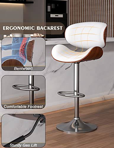 YaFiti Bar Stools Set of 4 Modern Pu Leather Swivel Adjustable Bar Stool Counter Height Stool Set Bar Chair with Back and Footrest for Kitchen Dining Room 4 of White
