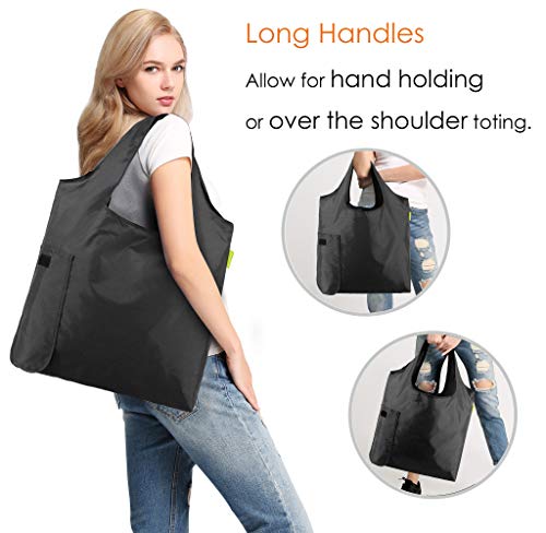 FASHION LIFE WITH UNIQUE ANIMAL PRINTS BAGS: The foldable shopping bags were available in different cute animal designs per set: Red Dog Black Elephant Navy Turtle Green Bird Brown Hedgehog Teal Dog Green Frog Yellow Dragonfly Pink Fox and Black Flamingo. Different unique animal prints will add different fun for daily use and when shopping you can sort frozen/fridge/ pantry/ household goods and so on making unpacking a little quicker. GREAT GIFT FOE EVERYONE: Wonderful nice animal patterns are great as gifts for friends and relatives to spread the environmentalism awareness and inspire them to go plastic-free that can help reduce the carbon footprint and do your part to keep the earth green! FOLDABEL CONVENIEVT & EASY TOE CARRY AROUND: The fabric reusable shopping bags can be easily rolled up and then secure the elastic loop around to hold it in place for storage or use the convenient zipper carrying case provides you with to fold and store them for on the go! LIGHTWEIGHT
